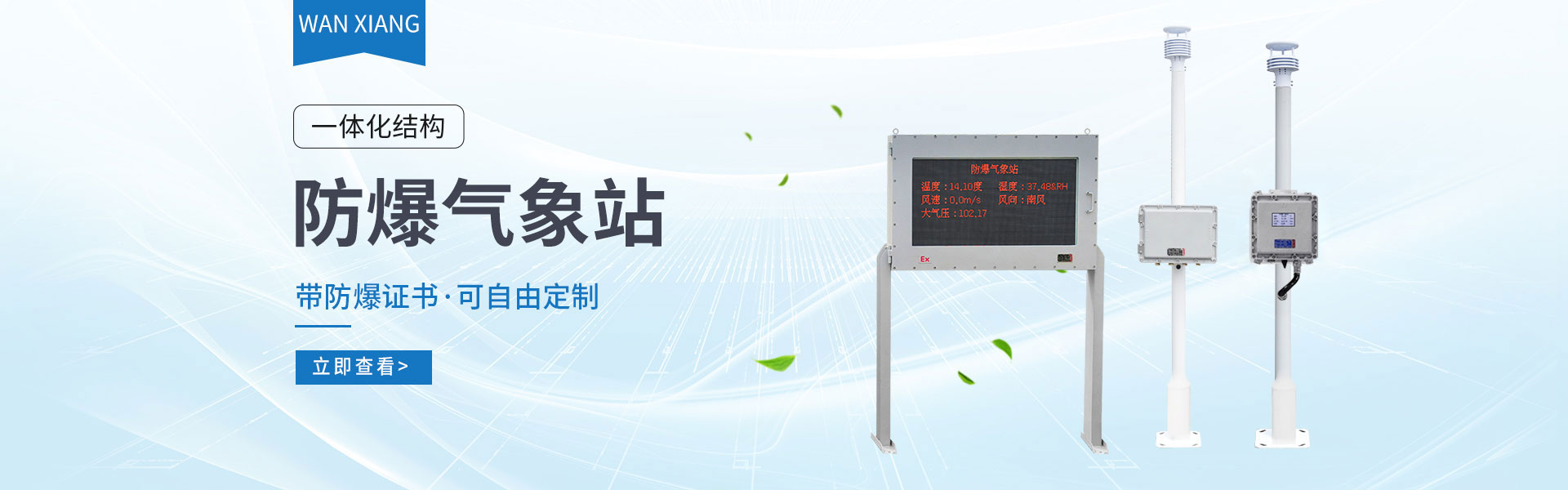 山東萬象環境科技有限公司官網主要產品有防爆氣象站,校園氣象站,農業氣象站,負氧離子監測站,超聲波氣象站,歡迎咨詢13276362033!
